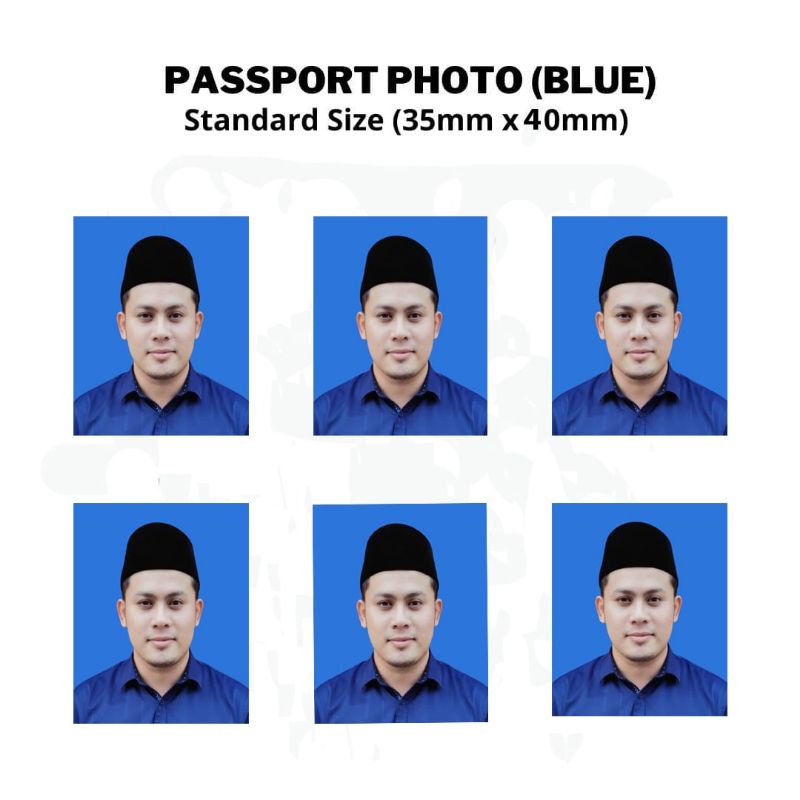 Latar belakang biru pasport Malaysia 35x50 mm. Saiz gambar ukuran passport dalam pixel. Id passport size photo print service waterproof cuci gambar saiz pasport.