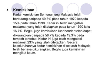 Peristiwa 13 Mei 1969 merupakan satu peristiwa hitam dalam sejarah negara kita kerana ia melibatkan pertelingkahan dan rusuhan antara. Model Ekonomi Baru berteraskan kepada peningkatan produktiviti pekerja yang bermatlamat membantu mereka meningkatkan pendapatan. Dasar Pembangunan Nasional DPN telah dilancarkan oleh YAB.
